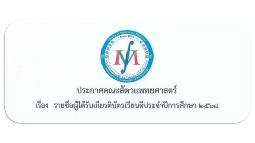ใหม่ ประกาศคณะสัตวแพทยศาสตร์ ที่ 005/2568 เรื่อง รายชื่อผู้ได้รับเกียรติบัตรเรียนดีประจำปีการศึกษา 2568