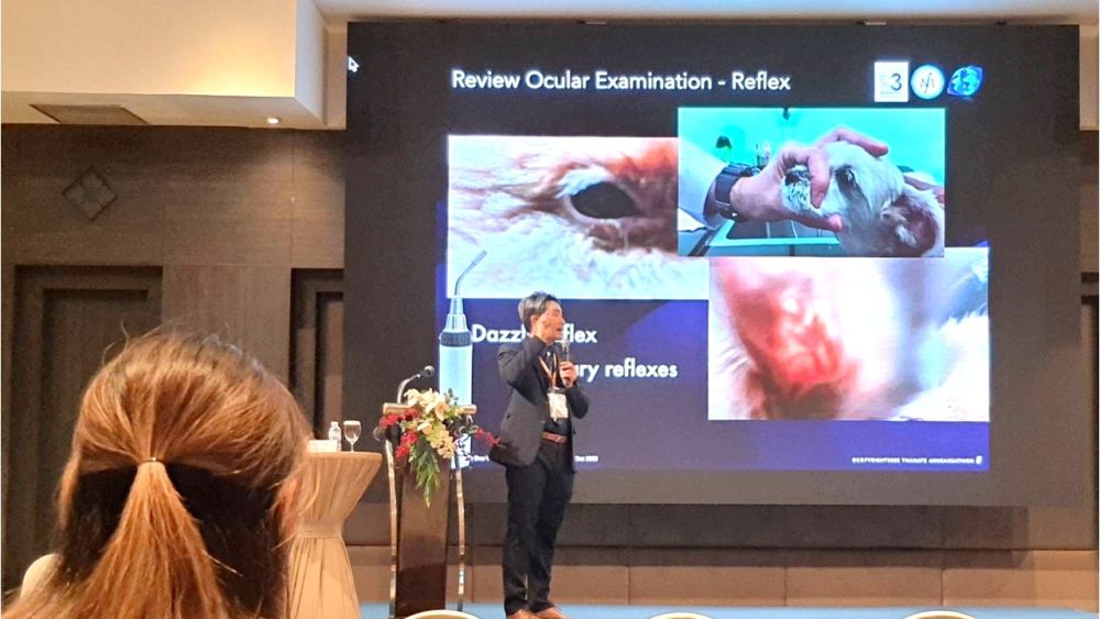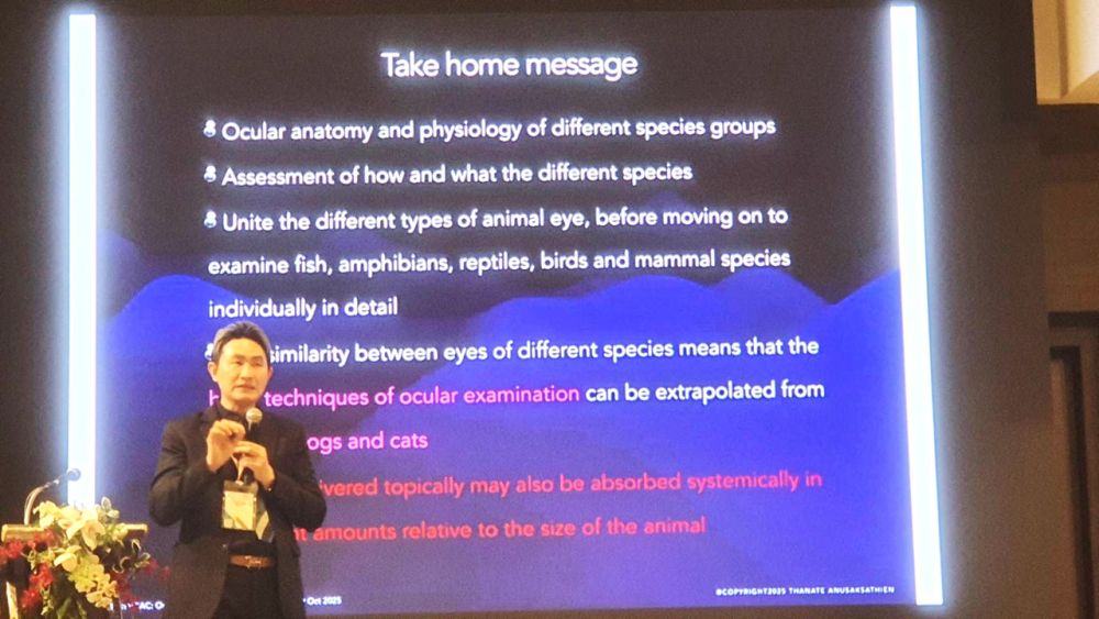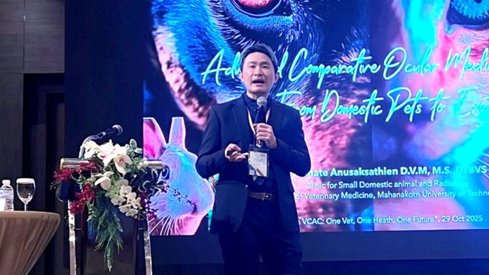 เมื่อวันพุธที่ 29 ตุลาคม 2568 อาจารย์ น.สพ.ธาเนศ อนุศักดิ์เสถียร (อว.สพ. ศัลยศาสตร์) อาจารย์ประจำคลินิกสัตว์เลี้ยงขนาดเล็กและรังสีวิทยา คณะสัตวแพทยศาสตร์ มหาวิทยาลัยเทคโนโลยีมหานคร ได้รับเกียรติเชิญเป็นวิทยากรบรรยาย เรื่อง “Advanced Comparative Ocular Medicine: From Domestic Pets to Exotic Species” งานประชุมใหญ่สัตวแพทยสภา ครั้งที่ 14 ประจำปี พ.ศ. 2568 ณ ศูนย์ประชุมอิมแพ็ค ฟอรั่ม เมืองทองธานี