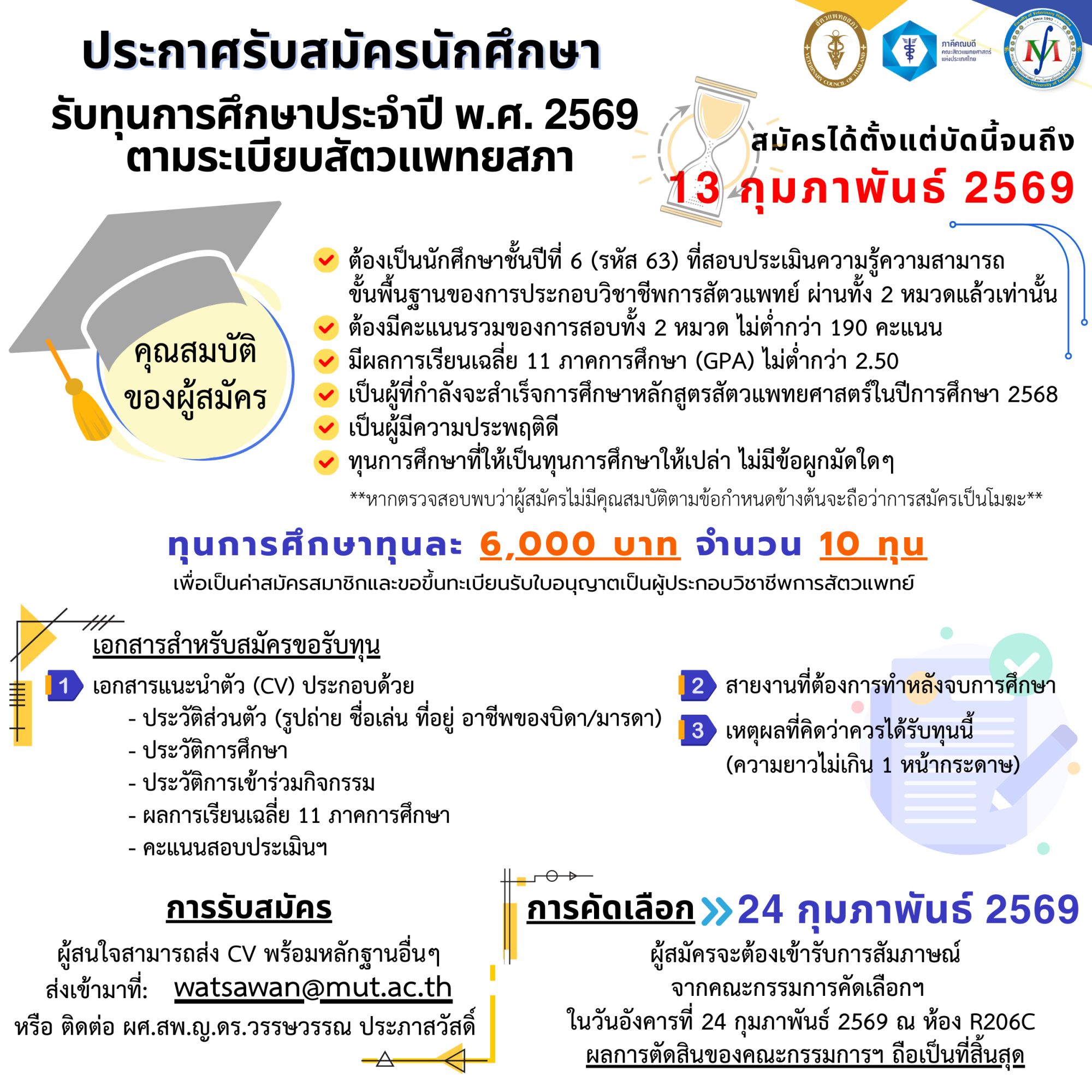 รับทุนศึกษาประจำปี พ.ศ.2569