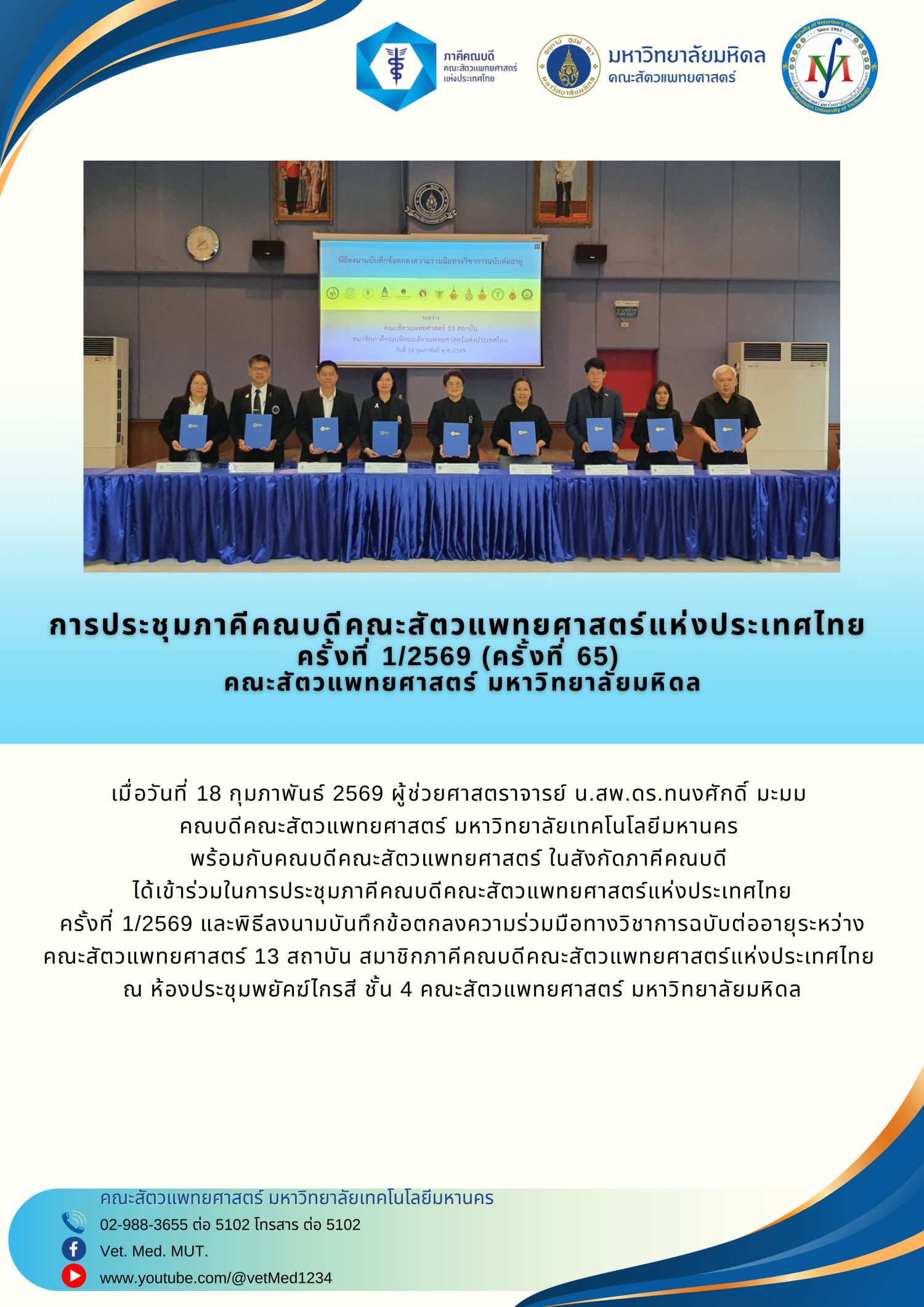 ประมวลภาพการประชุมภาคีคณบดีคณะสัตวแพทยศาสตร์แห่งประเทศไทย ครั้งที่ 1/2569 (ครั้งที่ 65)